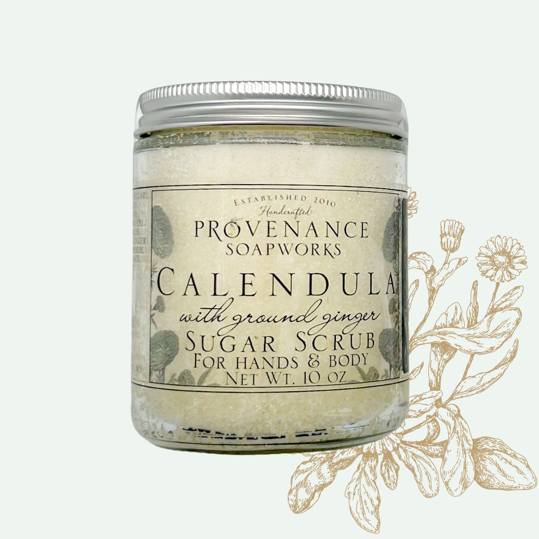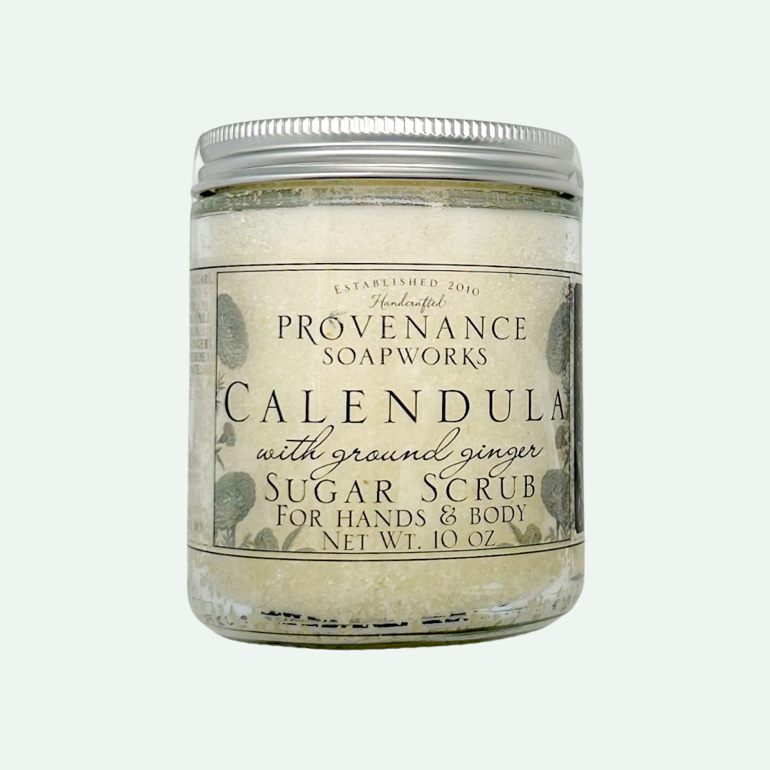 Ingredients: Sucrose (Sugar), Helianthus Annuus (Sunflower) Seed Oil, Glycine Soja (Soybean) Oil, Calendula Officinalis, Zingiber Officinale (Ginger) Root Powder, Tocopherol (Vitamin E), Fragrance, Caprylyl Glycol, Phenoxyethanol.